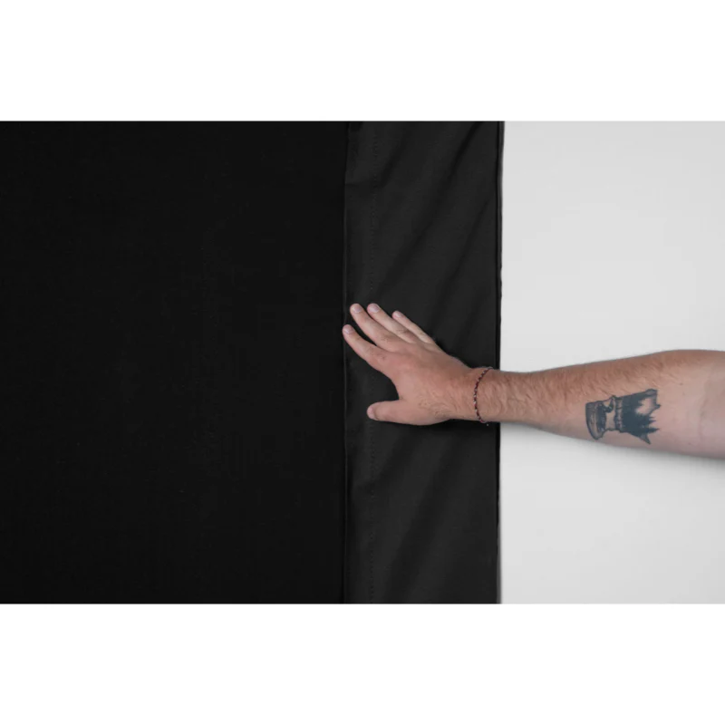 Black knit fabric provides for a tough surface to catch any stray shots that attempt to leave the simulator. The dark color also shades your screen to allow for a bright contrast, clear image that is projected on your screen.